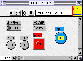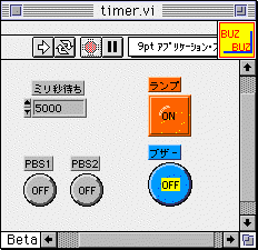 図8のタイマを組み入れたラダーチャートをLabVIEWで作成することにします。 フロントパネル(図13)