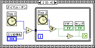 ではタイマールーチンのダイアグラムを作成しています。LabVIEWダイアグラムは,左から右へ,上から下への順で実行されますから,図18