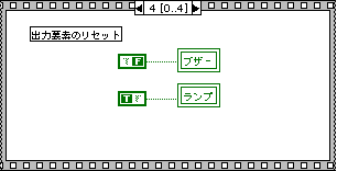 はアプリケーション作成の常套手段で,ランプ,ブザーアイテムのリセットを行っています。ブザーLEDをOFFに,パイロットランプをONにしてプログラムを終了します。