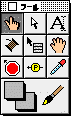 旧バージョンでプルダウンメニューにあった[制御器],[関数],[ツール]はフローティングパレットになりました。 文字表示のプルダウンメニューは,図2